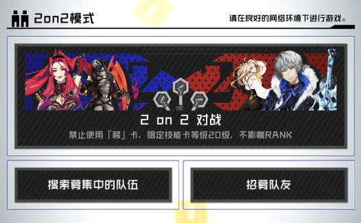 当然,也有与常规自由对战不同的设定,比方说不会规律性出现「技能卡等级50」、「技能卡等级20」这样变化性的卡等限制规则,会统一以「技能卡等级20」的规则向大家开放。此外也会因为平衡性问题做一定调整,比方说「移」类技能卡是无法进入2V2对决的。