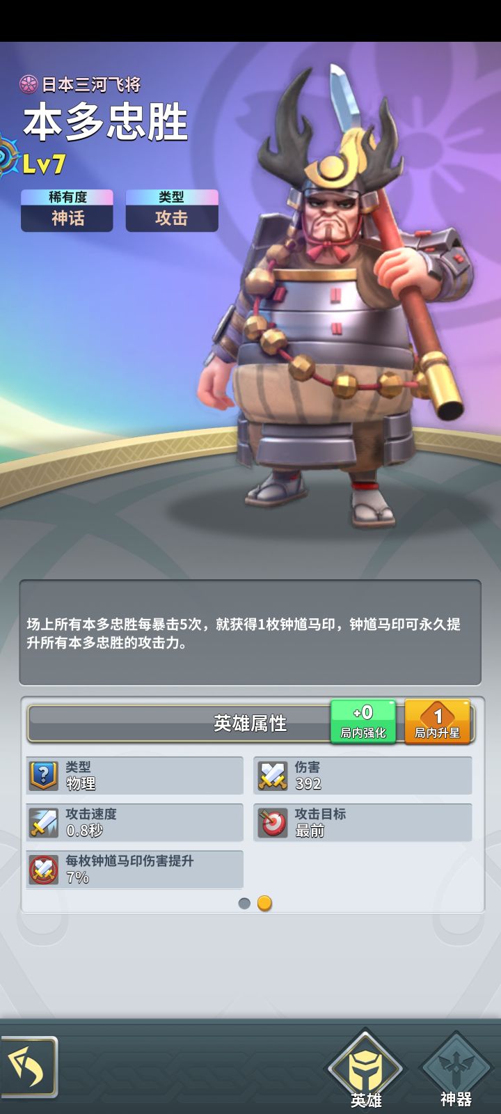 本多忠胜这张卡估计大家镜像对决都体验过了,这玩意儿是既没独特机制,又不能对群,而且刻印叠层慢,收益低,打对战、生存被传说卡普罗吊打,打合作费劲吧啦叠半天专属,也比不上白送的雅典娜铺满来的收益高,真是全方位被爆,属实配不上一张神话卡的定位。大伙也投个票,看看目前哪张是大家心目中公认的最弱神话卡。