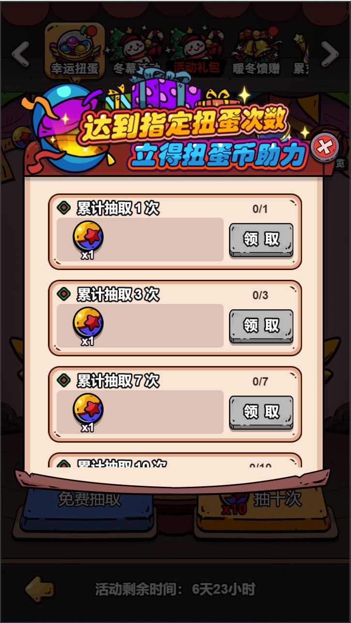 而且扭蛋抽取累计到一定次数,可以获得累抽助力赠送免费扭蛋币。