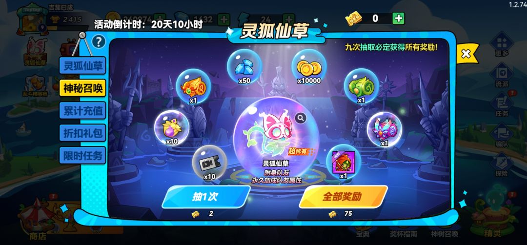 首先进游戏打乱斗胜场能给你50抽这个样子,然后就是抽卡,基本上游戏会固定给你随机一个流派,比如你抽到菜系,那么大概率游戏会给你后面抽卡安排齐菜系流派,我个人就是开局果系流,但是不重要这只是过渡,为什么我这么说呢,因为除了亡灵其它流派很难玩,像果系你得要灵狐,咋们作为白嫖就不要指望了,直接去做亡灵,最好是福袋这些先肝出来昙花或者亡灵的金卡,这样后面钻石抽卡可以自选(提升亡灵流派)