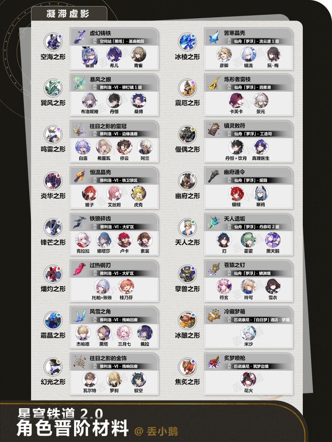 我是丢小鹅,为你带来【星穹铁道2.0】全角色晋阶/行迹材料一览表。