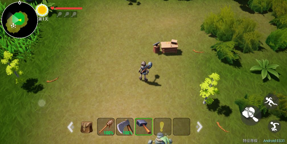 砍上几棵树后,会收集到一些木头,这时候我们就需要做一个工具锤(木头+石头)。找个青山绿水的