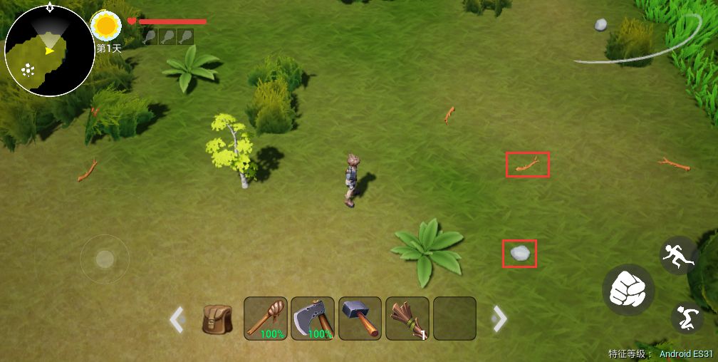 要致富先撸树!!空手撸树特别慢。所以要先做得做个斧子,草原里面找两个树枝和两个石头,就能做一把石斧,可以大大提高撸树的效率。
