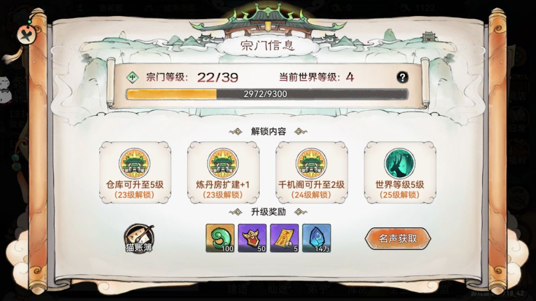 宗门名声的主要获得方法有两种:日常任务/世界/