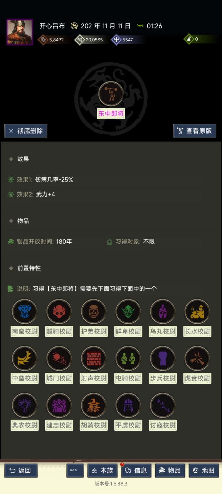 三国中除了朝廷封官之外,还有各势力自封的官职。现在通过特性升级我们实现了这一点。官职为5级,包含都尉-校尉-中郎将-杂号将军-重号将军(历史专属)。