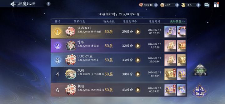 0氪风雷,单人神魔比拼通关50层
