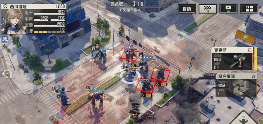 西尔维亚破坏右边敌人武器,再攻击中间敌人