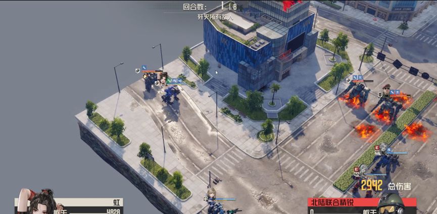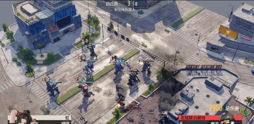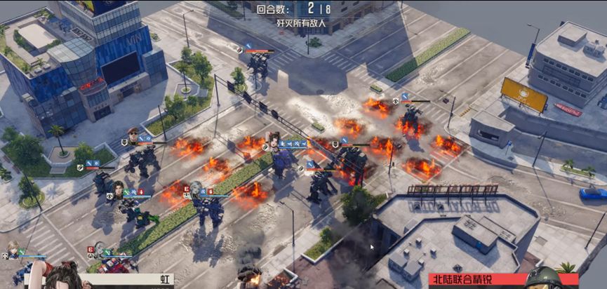 敌人都基本只剩躯干,艾琳火箭先手,其余人收割将他们全部消灭