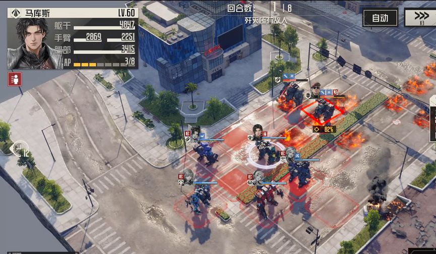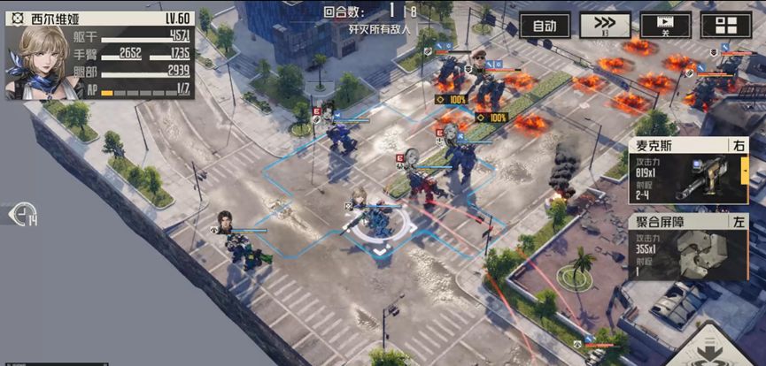 本关解法:虽然敌方恢复能力较强,但是只有在反击的时候才会生效,主动攻击不会恢复耐久值,如果部位破损了,也不会修复。需要注意的是,如果敌方反击没有命中,那么同样不会恢复耐久值。本关可以采用防守反击或者远距离消耗的方式将敌人消灭。