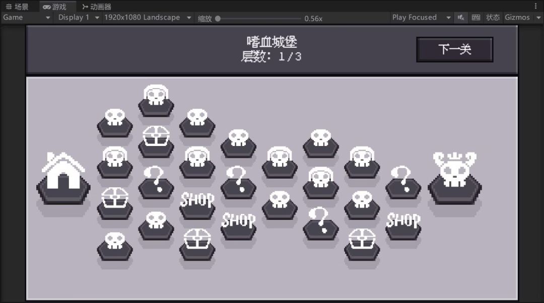 事件关(问号图标),奖励关(宝箱图标),商店关。
