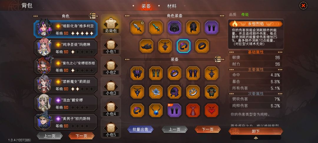 我们可以准备两套装备作为毕业套装。一套是兄弟会专属套装,优奈的新生,增加百分之45暴击率。第二套贼神套,增加敏捷、命中、伤害、吸血。