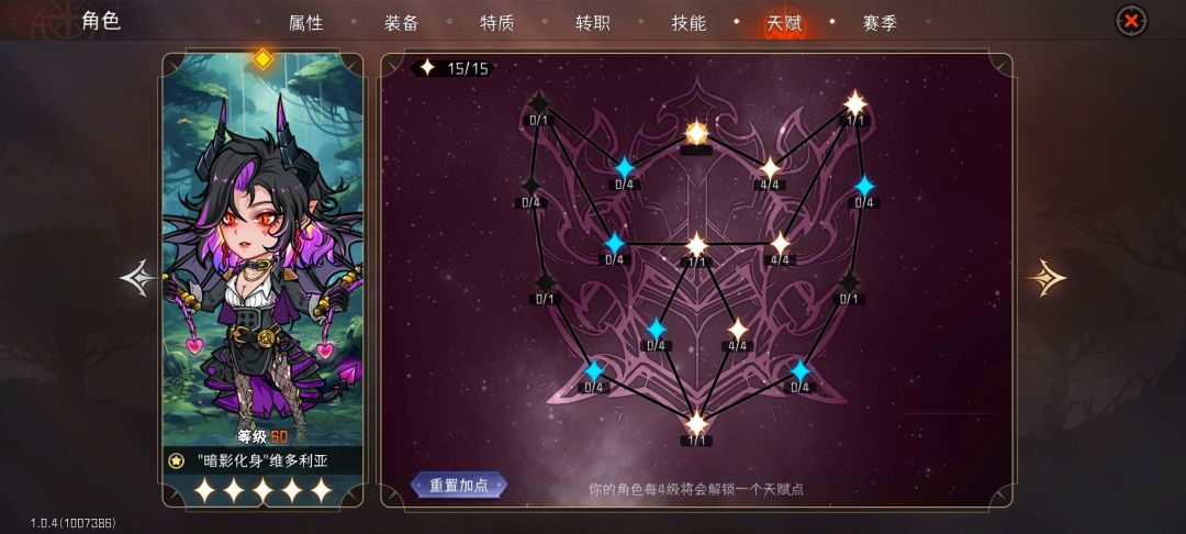 暗刺天赋加点:点出15攻击和所有伤害,10敏捷。