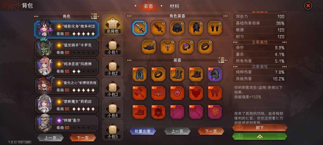 暗刺作为顶级输出角色,我们用暗刺来单c完全没有问题,首先是圣物选择问题,暗刺特点是暴击高,哪怕局内没有任何暴击增幅,仅仅依靠局外暴击也可以达到百分百暴击的特点。所以我们圣物最优选取兄弟会圣物:暗影面纱。