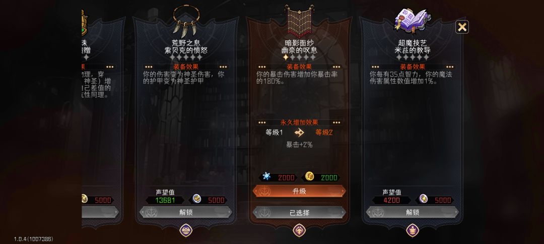 优奈套在你拥有暗影面纱圣物的情况下可以给你提供巨额暴击的情况下额外增加巨额爆伤。追求极致伤害,极致的爆发。