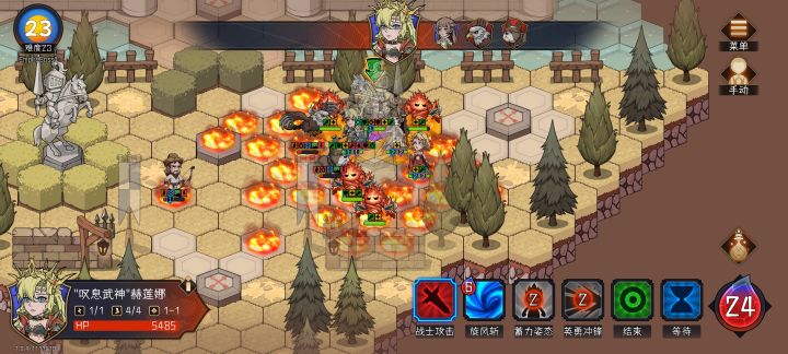 3)回合行动:奶骑选了普攻打人回血,配合治疗姿态,在阵线成型后可以稳稳拉住血线,给奶妈普攻BOSS的机会,剑圣突击后踩踏破盾接旋风斩可以不用姿态(甚至我剑圣伤害不够会漏怪)而阵线成型前不减员才是难点。