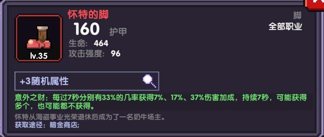 鞋子方面:比如装备怀特的脚,该装备在本次秘境赌好的情况下,属于t0级别加成,对于需要打过140以及需要内卷140时间属于必备品,但是由于其不稳定性,在大众攻略中并不推荐,赌不好可能心态爆炸。