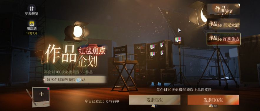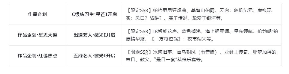 作品企划将划分为【作品企划】【作品企划·星光大道】【作品企划·红毯焦点】,均使用【企划案】发起企划,共享保底数。