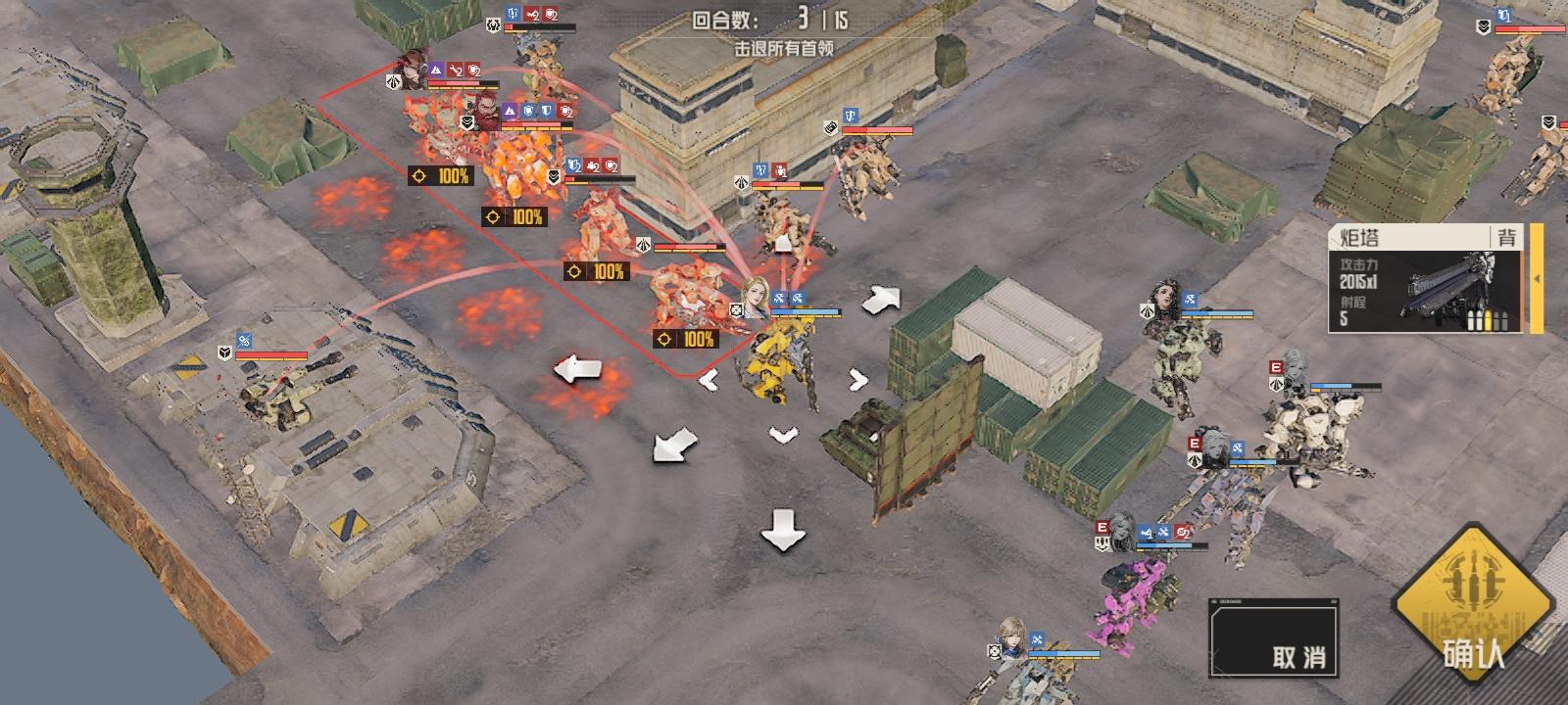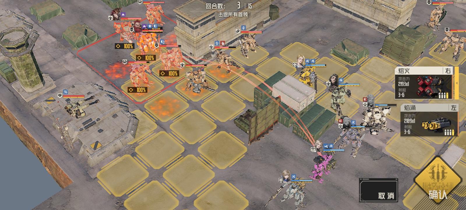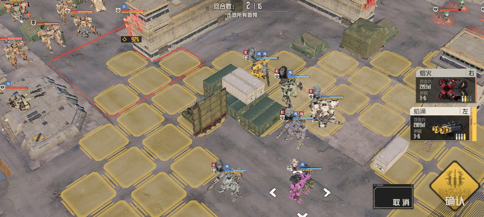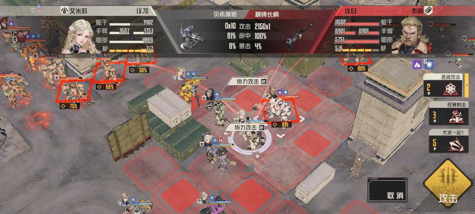 第二回合肖尼打一枪下边的狙击手(应该可以狙杀或破部位),然后继续走位,西尔维亚击杀莉莉娅后击杀狙击手和盾兵。最终走位有图。