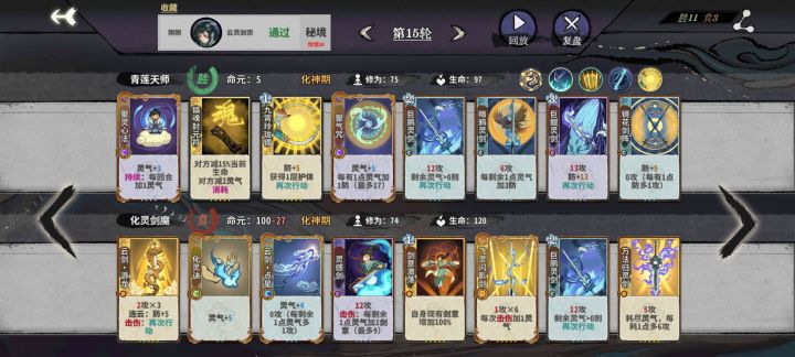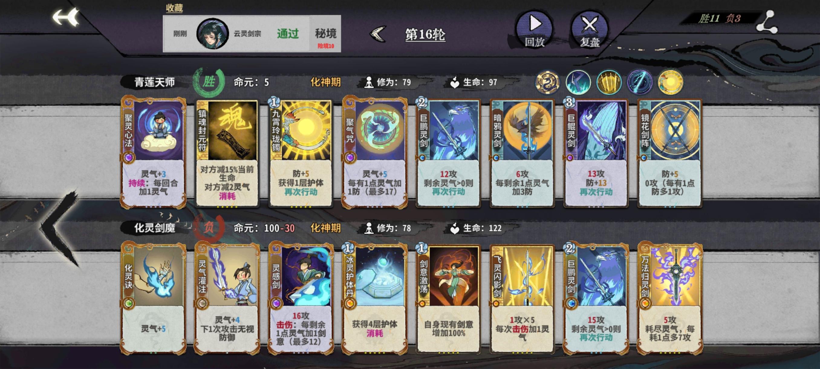 新手龙瑶,累计打了10多小时,副职随机了符咒,终于过了。关键牌在于护体挡掉boss的灵感剑,不让它叠剑意。