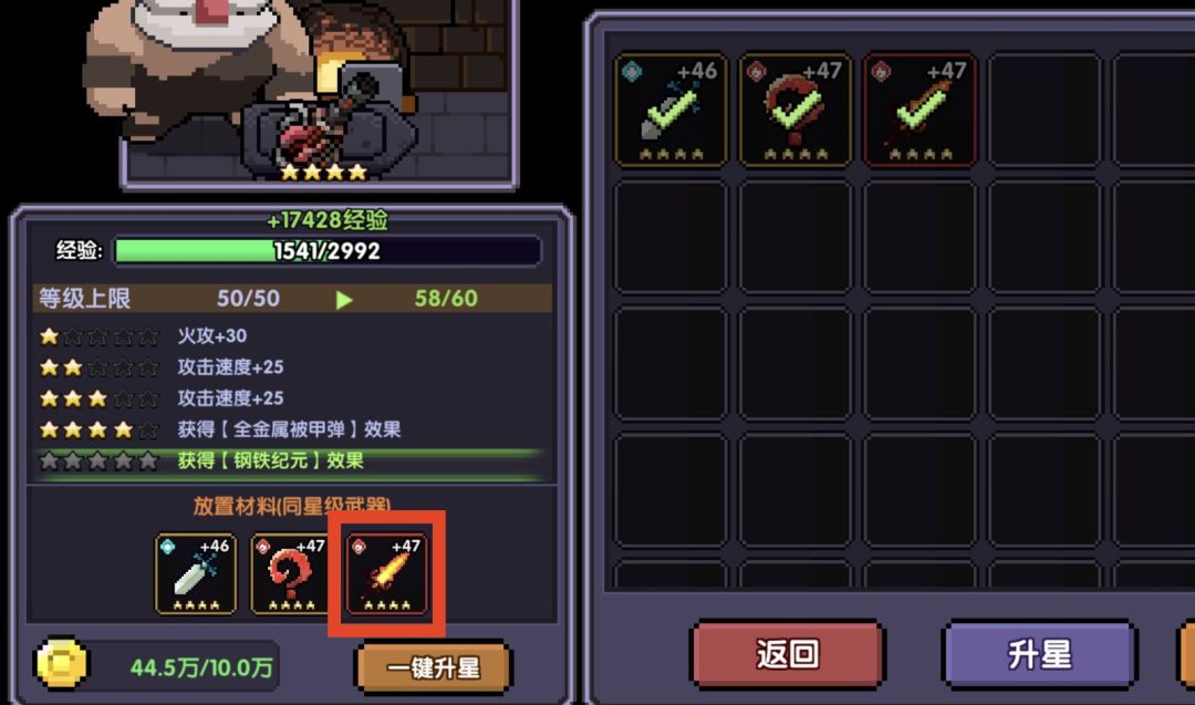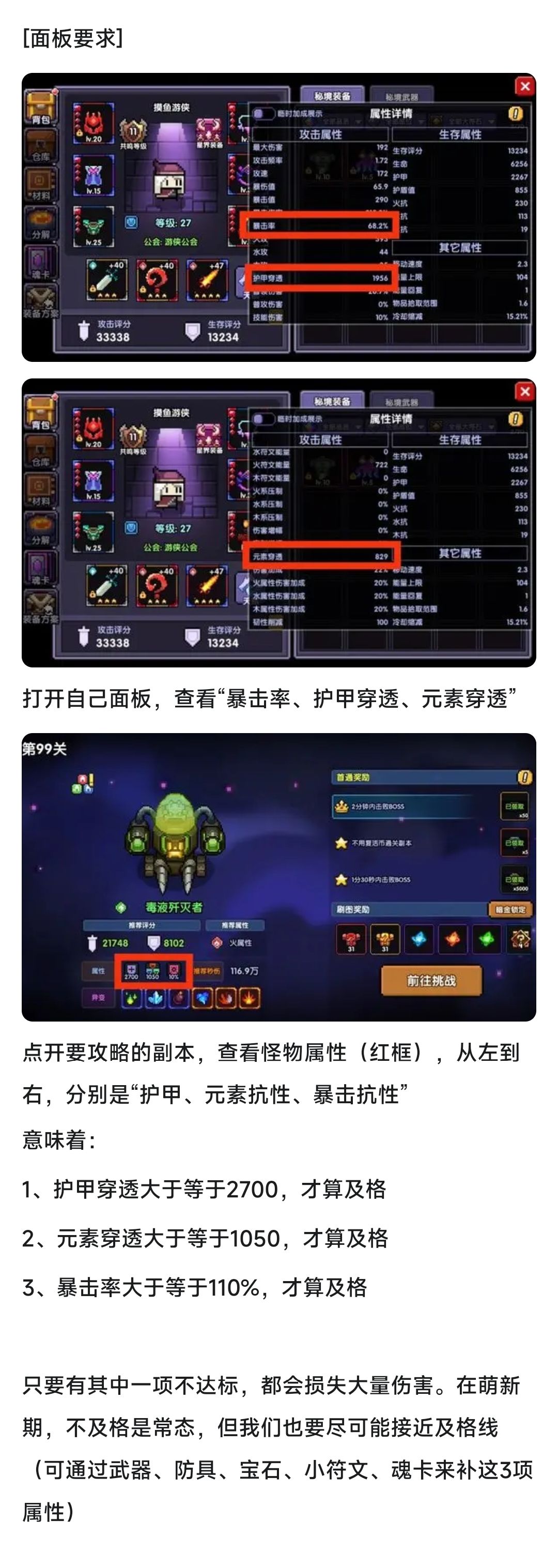 卡关时,要学会看自身面板,讲解见下图:
