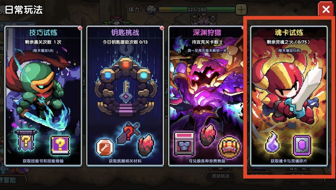 魂卡则是通过“技巧试炼”获得
