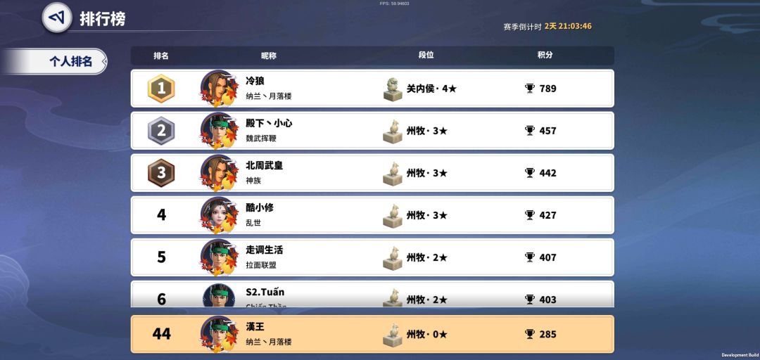 目前排名44,以下为战绩鉴赏,活捉武皇,脚踏殿下,斗战群雄,带刺史,州牧局成功夺冠。