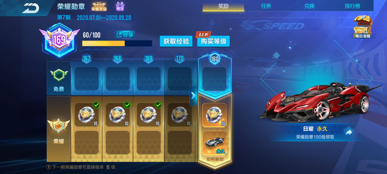 我这周礼包就能抽满了,但就怕之后两周有消耗点卷活动,这样点卷任务就可能完不成了,算了一下,每周勋章任务总经验都是450的话,全做完刚好超180一点点