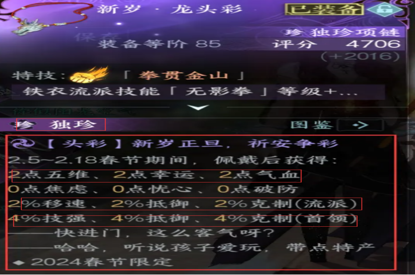 我但是目前独一党的限时项链:新岁龙头彩,特有的独珍属性即将迎来过期来临的状况,