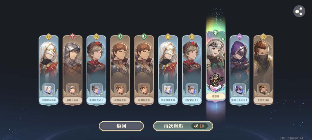 小号除黯心开了3阶的两个技能,其他的全是彩卡使用,全程基本照我的理解点了,打穿10章的话,可以有7个左右的领悟之力富裕(彩越多固定消耗越多)。按这个量算的话,可以全开一个角色的技能,或者补3个左右的输出大核的5阶/11阶。