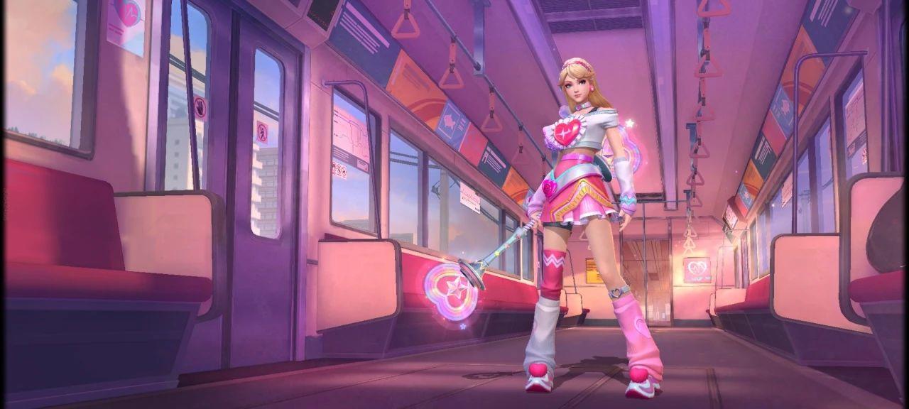 皮肤的整体风格我们参考了蒸汽波、Y2K风格,加入了爱心、五角星、跳动的心弦等元素,并搭配高饱和度的色彩和充满韵律的动感音效,营造复古而又富有浪漫的氛围感。隆哥光是看着都觉得粉红泡泡要溢出屏幕了~