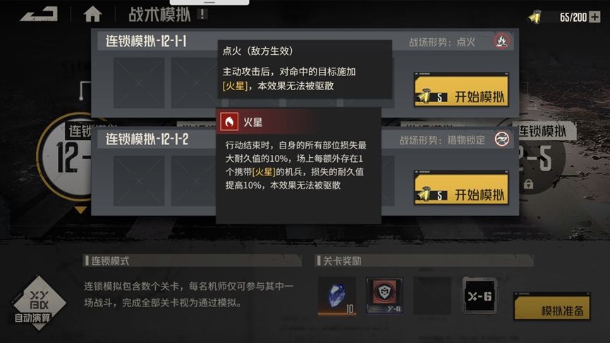 先来看看这次战术模拟的buff战场形势,敌人攻击后会给我方单位挂上点火,在其行动结束时会受到大量百分比伤害,被挂点火的人越多伤害越高,可以说被挂两个点火基本就寄了。