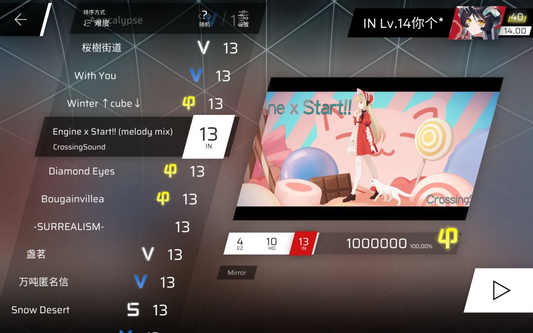我逐渐适应了IN14的谱面,也开始打更多的14