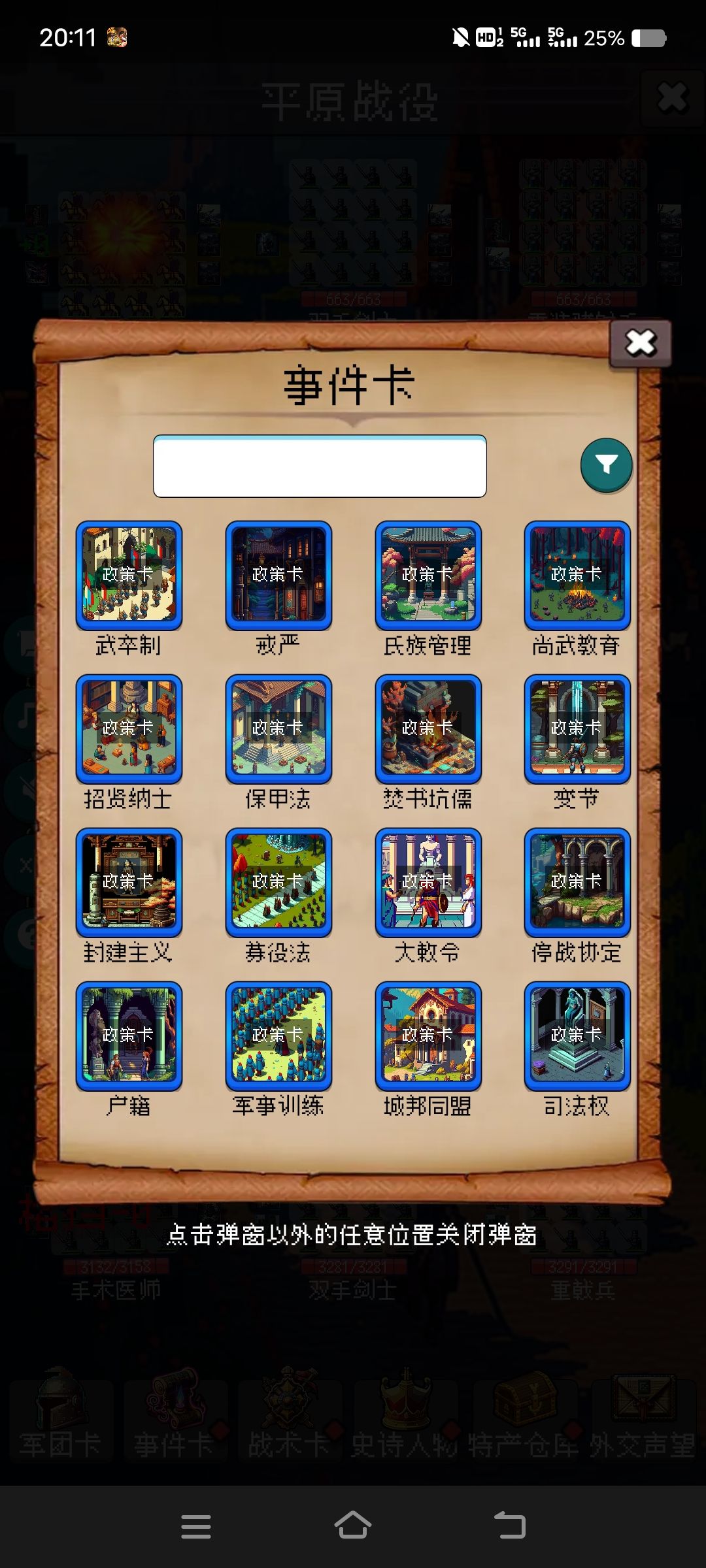 第一次完整通关,零零散散耗时两天,主要靠政策卡,尚武,停战,维希尔。前期骑兵混步兵,后期纯步兵,功能卡眼镜蛇突击,血战温泉关补回复,古阵大师配合雁形阵玄襄阵打输出,减暴击,金字塔没刷出来所罗门王,不然可以更轻松,后期尽量减少没必要的打斗,浪费时间,然后尽量选篡位者打,三个教皇很好刷,卡包选择秦国,埃及,斯巴达,避免打战车,步兵打钢轨阵很烦。
