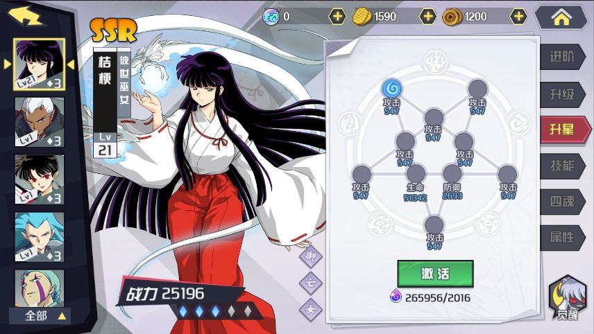 聊完抽卡,该轮到角色养成的升星系统了。升星分为魂点升级和星级突破两部分。