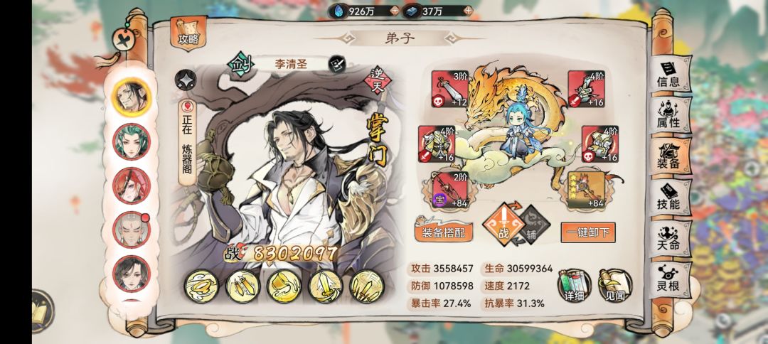 补位:五行画与瑶妹一样,争先手,速度套,天命墨华必备,速度词条。技能先手减益,霜临,金鸣,大荒,祭灵,天雷(我不用画,这就是实力的证明)理想状态下一回合大荒,金鸣加墨染禁增,二速祭灵,剑一个赤冥、禁阳、囚龙结束战斗。法宝2/3阶羽,道兵醉今朝,咏梅。本命法宝随意。