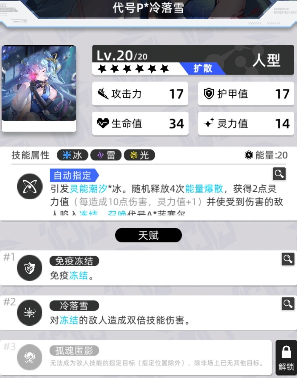 计冷落雪第一次释放技能时,对方无角色进入冰冻状态,但是敌方全体进入灵蚀状态 与苍冰队相同
