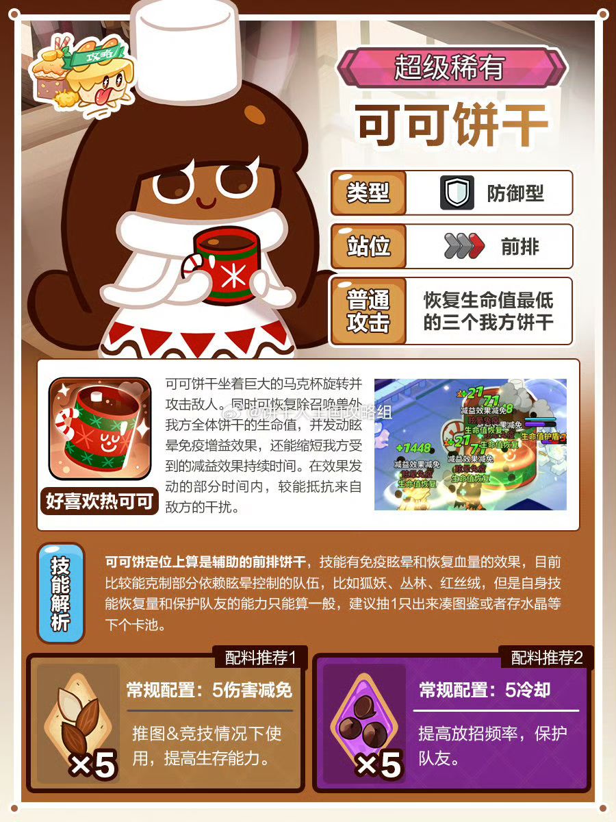 可可饼干测评,虽然自身有着免晕和回复的buff,但是自身能力在目前竞技场都不算特别突出。