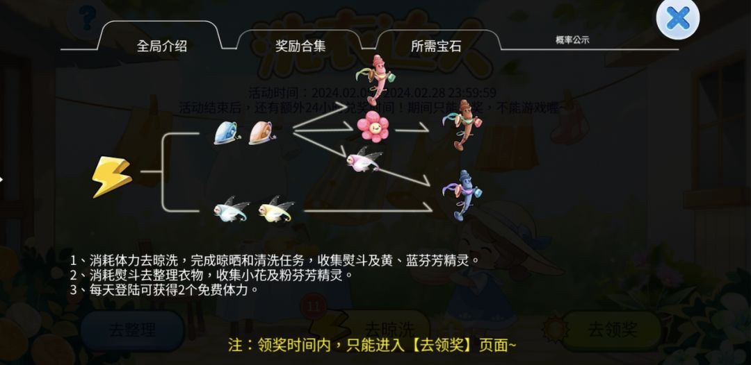1、本活动分为三部分:去晾洗、去整理、去领奖。