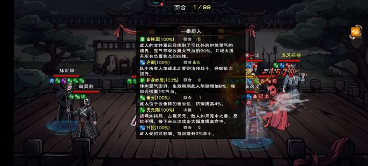 300级效果是开局一个buff,“护身妙息”:体内罡气澎湃,生效期间防御增加8%,每回合恢复1%气血,持续3回合。