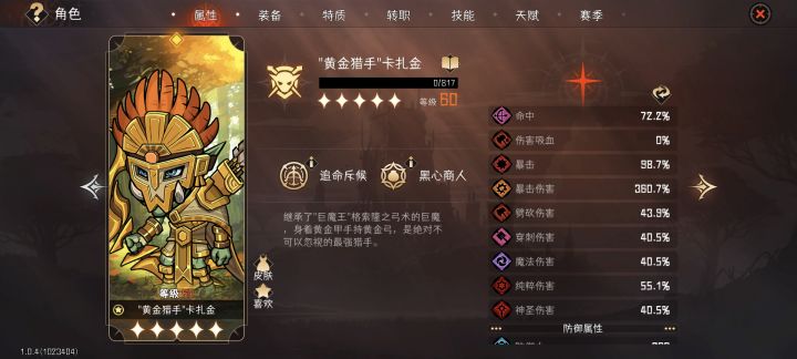 2.命中和暴击,已知100难boss韧性闪避为115%,所以装备上这两个属性是不能少的,都得拉满,配合天赋、特质以及局内的天神、遗物,基本上够用,最后还有赛季天赋30%暴击30%命中兜底。