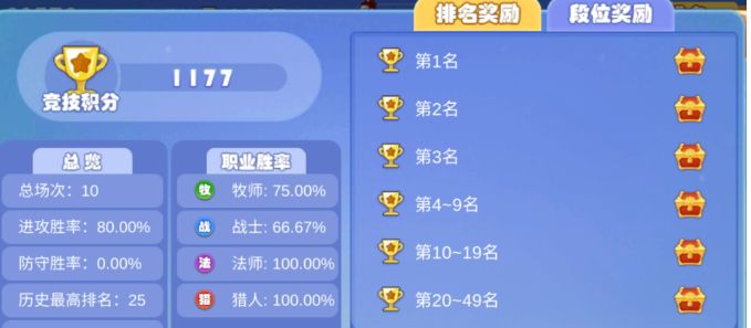 在竞技场中,你将看到其他玩家们的评分和排名。你需要根据自己的实力来挑选合适的对手进行较量哦~如果你赢得了这场比赛,分数就会飙升几十名喔;如果不幸输给了对方,积分可能会有所减少,不过更多时候,你的积分仍会保持不变。