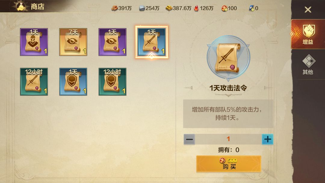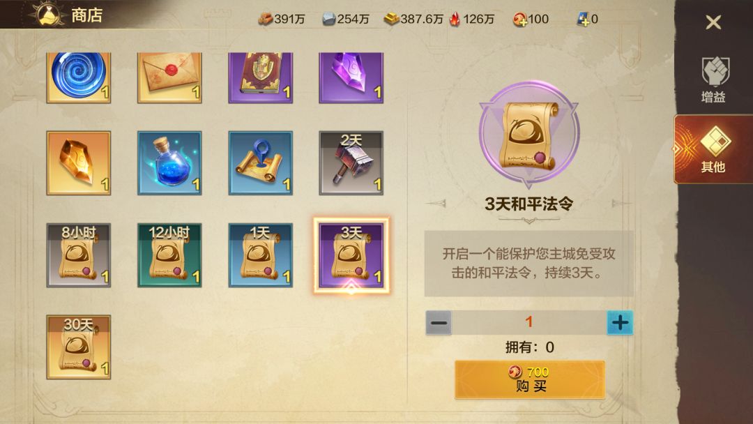 和平法令道具可以避免领主的主城受到攻击,必要时可以在商店中购买,除此之外还有敌情法令、反侦察法令、防御法令等都有助于守城。