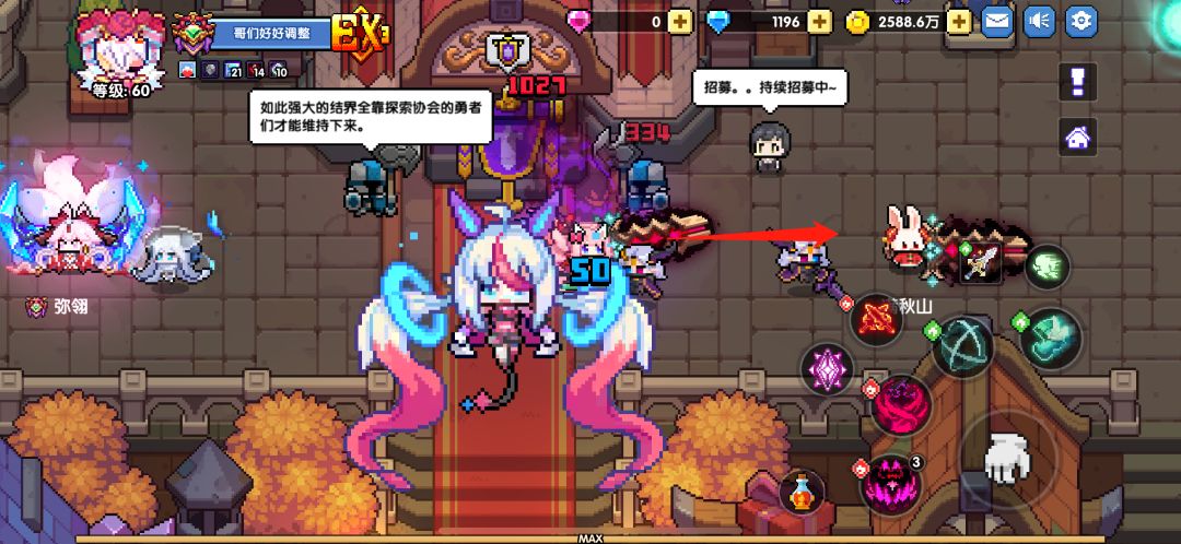 还是回到主城位置,往下方城门位置移动,不用出城门,看到图示箭头位置继续往里走,点击这个按钮,会传送到神秘区域