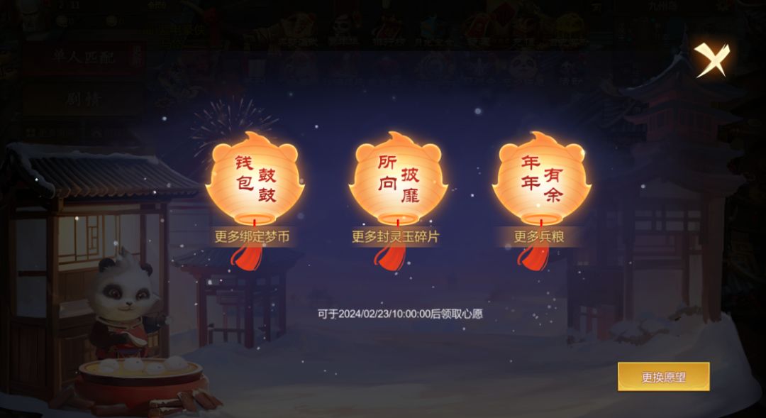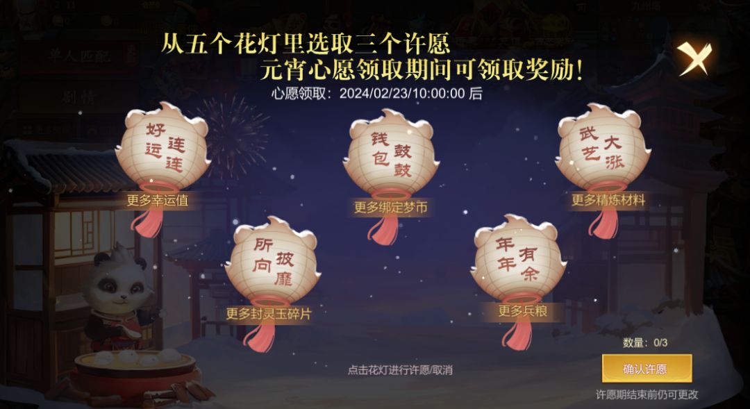 元宵心愿领取期间可领取三份许愿奖励,不要忘记来领取奖励哦!