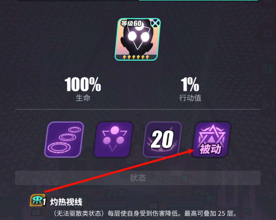 无法被降低行动值,每回合受到的伤害随攻击段数提升。绝对音域:(无法驱散类状态)受到音浪之王【狂热形态】的攻击时,消耗1层该状态避免本次攻击的所有伤害和效果。最高可叠加4层。