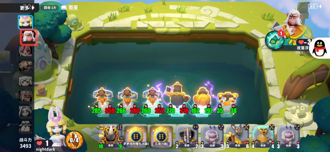 最终附上几张阵容成型的截图作为参考,希望对你有所帮助(仅有图二吃二了,这也能看出草原这一种族的一大特点:干架很强,但也不强。可以全员上终结要么我打你要么一换一,但没有能够赚到频率的存在,图二吃二就是因为吃一那伙计俩火牛两刀全给我划拉了)