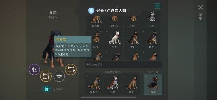 ***另外罗威纳可以出头领和真正的朋友,且只有朋友狗带上斗士/掠食者/耐久才会有实际效果。
