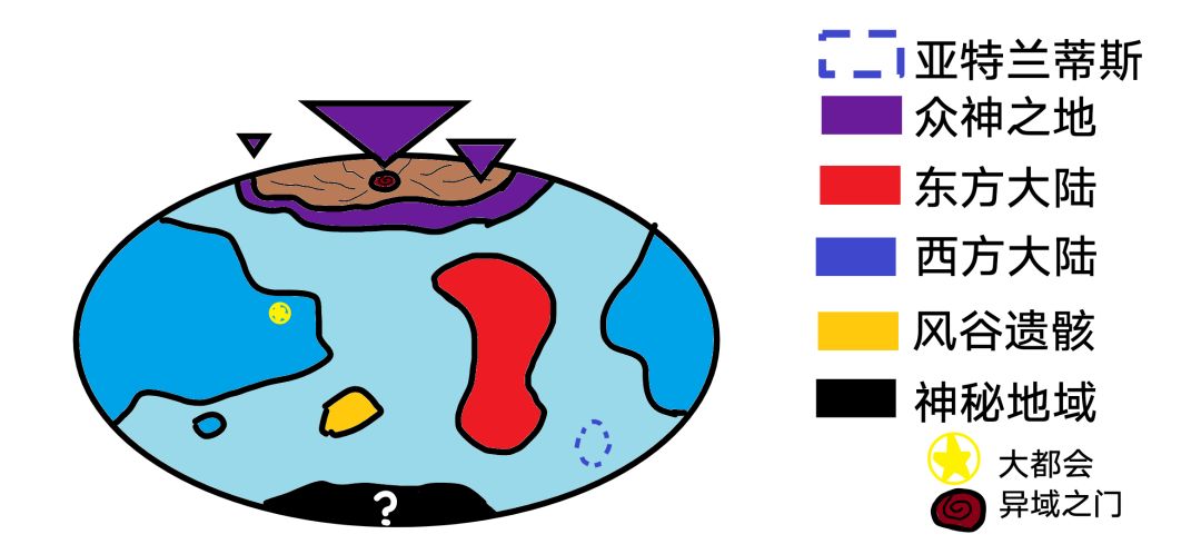 众神之地从地面脱离,浮在空中,有着继承创世神职责的神明,拥有与众不同的能力。在诞生初期,负责管理全球。阿当然,现代都不信神了,信仰不足,一段时期还面临众神之岛降落的风险。但!science!神用现代的力量又把它给升起来了。(这项工程似乎还在进行中,但依然能见到浮在天上的众神之地)