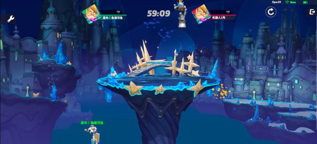 争夺方式也很简单,在星星上放个桌子玩摔跤……就是画出一片区域,击飞对手。胜利者可以得到它。(当然,选手总要使用自己的星星的力量,如果没获得胜利,星星会被消耗哦)
