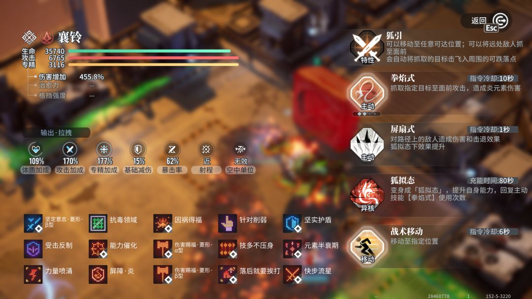 (1)大招不能断,即襄铃一直处于【狐拟态】,获取120%的攻击加成和技能强化。同时释放大招会回复【拳焰式】次数,立即激活【屏扇式】,这意味着襄铃可以无限使用技能。